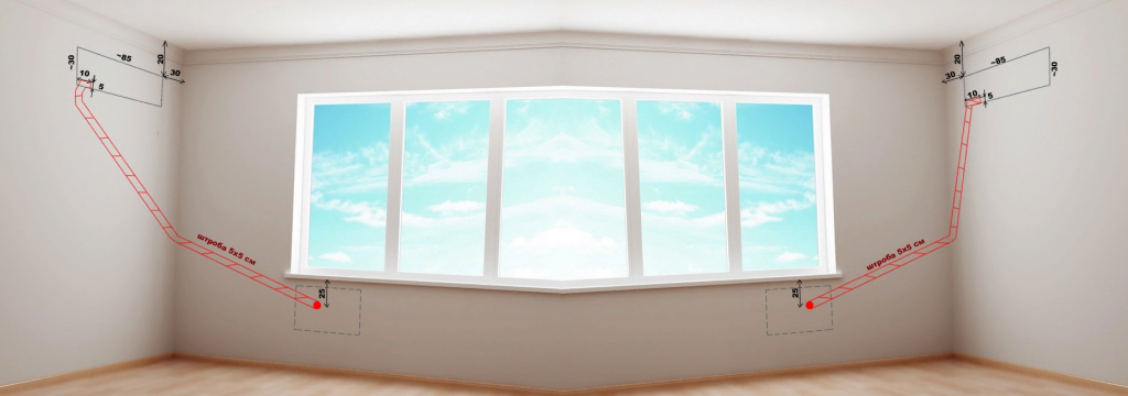 Электрические кабели прокладывают в кабель-каналах или штробах в стене. Сечение кабеля должно соответствовать мощности кондиционера. Подключение выполняют согласно схеме в инструкции